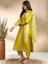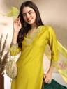 This exquisite Women's Solid Viscose Embroidered Work V Neck 3/4 Sleeve Calf Length Kurta with Ankle Length Pant and Dupatta Set, Colors Available Yellow, Teal Blue , Neon, Pink and Rani, Size S to XXL. a perfect ensemble for weddings, festive celebrations, parties, and special functions. Crafted from high-quality viscose fabric, the kurta features intricate embroidery that adds a touch of elegance and sophistication to its solid base. The V-neck design and 3/4 sleeves provide a modern and stylish look, while the calf-length cut ensures a graceful silhouette. Paired with comfortable ankle-length pants and a matching dupatta, this set offers a harmonious blend of tradition and contemporary fashion. Whether you're attending a grand wedding or a festive gathering, this outfit is sure to make you stand out with its refined charm and timeless appeal.