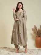 Women's Silk Embroidered Solid Full Sleeve Round Neck Kurta and Pant with Dupatta Anarkali Set is an exquisite ensemble perfect for weddings, Diwali, Navratri, and other Indian festivals. Colors Available Cream , Wine , Rose Pink and Coffee. Size S to XXL. Crafted from luxurious silk, this set features a beautifully embroidered solid kurta with full sleeves and a graceful round neck, offering a blend of traditional elegance and contemporary style. The coordinating pants provide a comfortable yet chic fit, while the included dupatta adds a touch of sophistication and completes the look. Ideal for festive occasions, this Anarkali set is designed to make you stand out and celebrate in style.