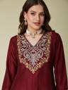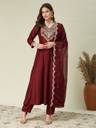 This Women's Embroidered Silk Blend Anarkali Kurta Set is a perfect fusion of elegance and tradition. The kurta features delicate embroidery on luxurious silk blend fabric, offering a refined and polished look. It is paired with a matching dupatta, enhancing the overall charm of the outfit. The inner crepe fabric ensures a comfortable fit and smooth draping. Ideal for festive occasions or special events, this ensemble exudes grace and sophistication.