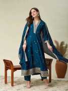 This Women's Embroidered Silk Blend Anarkali Kurta Set is a perfect fusion of elegance and tradition. The kurta features delicate embroidery on luxurious silk blend fabric, offering a refined and polished look. It is paired with a matching dupatta, enhancing the overall charm of the outfit. The inner crepe fabric ensures a comfortable fit and smooth draping. Ideal for festive occasions or special events, this ensemble exudes grace and sophistication.