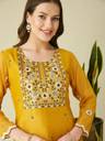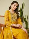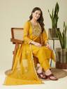 This exquisite Kurta, Pant, and Dupatta Set is a perfect choice for festive celebrations, wedding functions, and traditional occasions, offering a blend of sophistication and charm. Crafted from muslin fabric, the kurta features intricate embroidery work, adding a rich and artistic appeal. The round neckline enhances the timeless design, while the 3/4th sleeves provide a balanced and graceful look. The matching muslin pants ensure a comfortable yet polished silhouette, perfectly complementing the ensemble. Completing the set is a lightweight organza dupatta, adding a sheer, ethereal touch to the outfit. Whether paired with statement jewelry or kept minimal, this ensemble exudes grace and is ideal for making a lasting impression at any celebration.