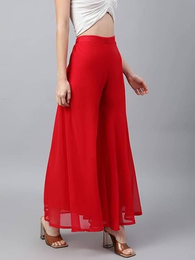 Cultural Influence: In some regions, especially South Asia, Georgette palazzos are often incorporated into traditional attire like ethnic wear, such as with a kurta or a long tunic. They blend modern fashion trends with classic ethnic wear, offering both style and comfort.