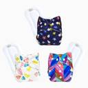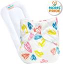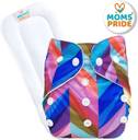 MOM'S PRIDE ® Freesize Adjustable, Washable and Reusable pocket cloth diaper for Newborn Child Toddler Infant Babies (0 - 2 Years) (with Wet-Free White Insert Pad) (Whiteheart, Bluestar, Rainbow Zigzag) (Pack of 3)