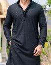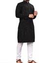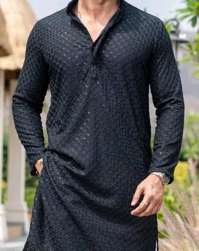 Featuring an attractive sequinned design, this men's kurta exudes sophistication and charm. The intricate embellishments are thoughtfully crafted, offering a refined look that stands out in any setting. The embellishments provide a subtle yet striking appeal, making this kurta a statement piece in your ethnic collection, ensuring you make a lasting impression.