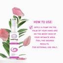 {DIRECTION} Apply a pump on the palm of your hand and on the moist skin of your intimate area. This product is not intended to treat or cure any diseases. For external use only.