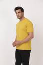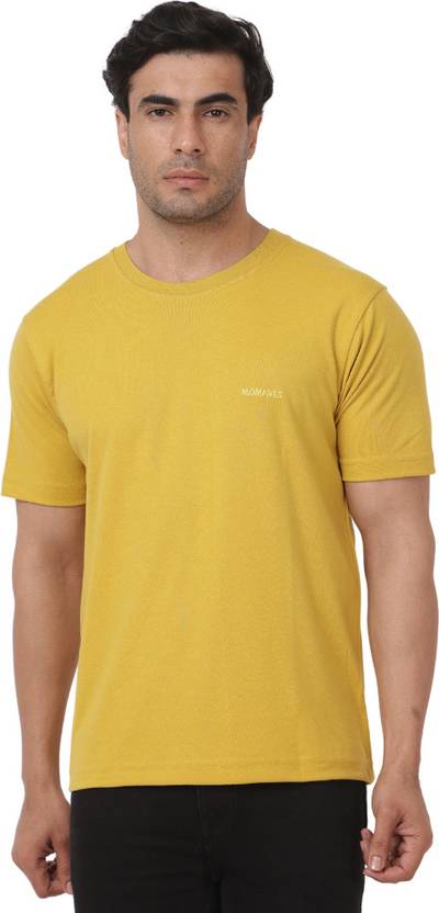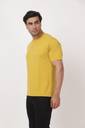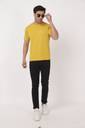 Moments Men Solid Round Neck Cotton Blend Yellow T-Shirt