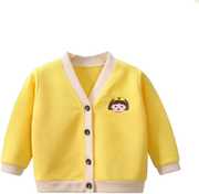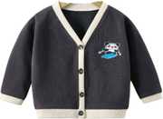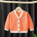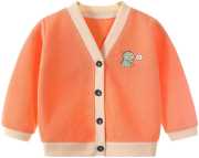 MOMISY Applique V Neck Casual Boys & Girls Orange Sweater