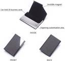 | Key Features | - CLASSY DESIGN : keep your cards organized and handy when on the go.; SLIM : Leather business card holders can slip into your pocket, fits your briefcase, handbag without any sharp edges in surface., PROFESSIONAL LEATHER CARD CASE for men & women : Business card wallet is soft-touch leather with suede interior. Curved design for comfortable wrist grip. Inside steel holder protects your cards from bents and scratches., ELEGANT Card Wallet for credit cards, business cards, driving licence, ID cards, medical cards, Metro cards, access cards, gym cards, etc., STYLED TO IMPRESS : Make a statement with clean cards and smooth dispensing. Steel interior, suede finish, and premium PU leather holder., Applicable for : Men and Women., Size : 9.5 cm * 6.5 cm * 1.25 cm