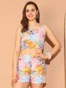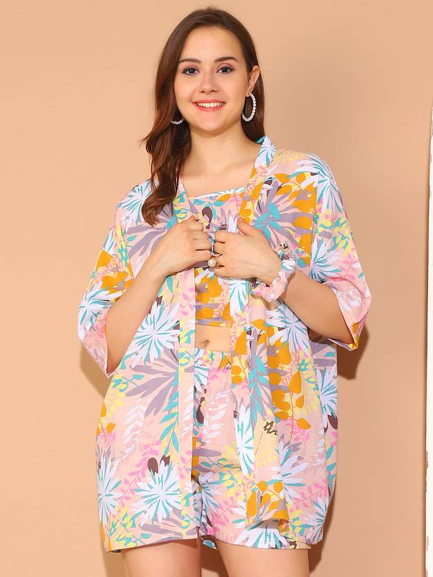 This co-ords consists of a top, shorts and multi floral printed top, has a adjustable shoulder strap neck and printed shorts, has an elasticated waistband with slip-on closure Comes with jacket