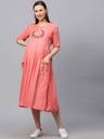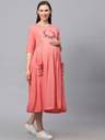 MomToBe maternity dresses are specially designed to be basic, fashionable but comfortable for all stages of pregnancy or daily wear after delivery. Feeding dresses are made from soft and pregnancy friendly comfortable rayon fabric for all pregnant mothers. Round neck and 3/4 sleeve nursing dresses are designed with style and versatility in mind. These has smart discreet feeding access with 16-inch vertical concealed zipper. These Knee Length maternity western wear are easy to pump & breastfeed. With flaps below the zips, it avoids irritation caused by zips brushing against your body. These embroidery pregnancy dresses are perfect for any occasions such as casual work, vacation, friends, party or family gathering etc.
