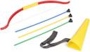 This is a wonderful bow & arrow set which includes 1 bow, and three arrows. This bow and arrow set is a perfect gift for children. It is made up of good quality material and is ideal for both boys and girls. Kids can have tons of fun playing with this action gear. Ratna's Deluxe bow and arrow with 3 arrows and a arrow holder.