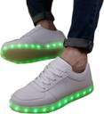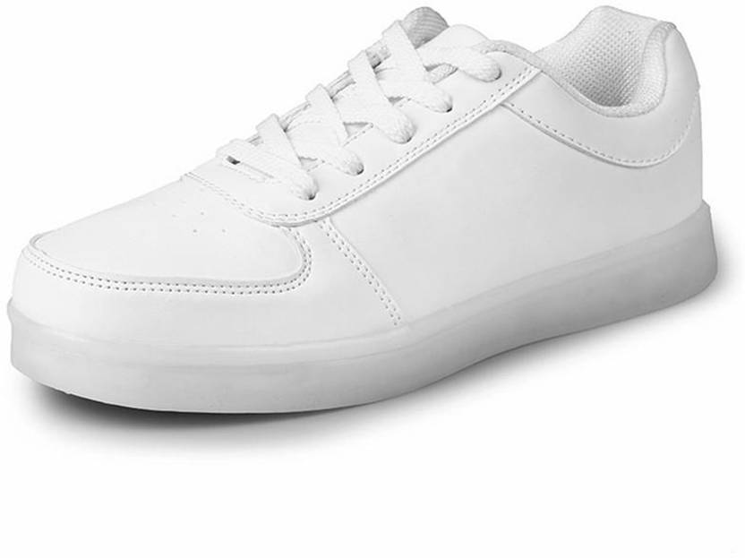Our LED Shoes are unisex, making them available for both the boys and the girls! Our Led shoes/ Sneaker are ideal for the bike, College, School, Market, Home, Night outing, dance floor or Party etc. These LED Shoes have 11 Led Lights Function 1.red light 2.green light 3.blue light 4.green and red light 5.green and blue light 6.red and blue light 7. red,green and blue light up 8. red,green and blue blinking 9.multi colors changed slow 10.multi colors changed fast 11.Seven Multi colors changed . Our all-white sneakers have a USB rechargeable port right inside the shoe, so you can wear these for years to come. That's right, just plug these bad boys in to any standard USB port, just like your cell phone, and 2 hours later you've got a gorgeous glowing piece of footwear that will outlast you for the night! We've conveniently hidden the secret on/off switch in the shoe! A quick press between the 1nd and 2nd eyelet of the laces and your shoes will be lighting up your night. These are SUPER BRIGHT LED LIGHTS that stay lit all night long, not just when you take a step. -------------------------------------------------------- Note:Do Not Wash, only clean becoz not 100% water proof,outer is waterproof. but inner is not. Enjoy the life with light.