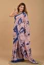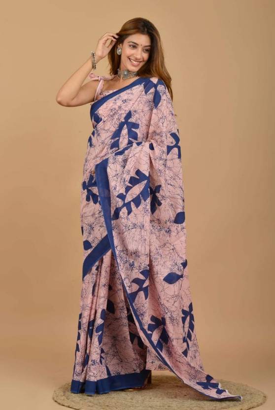 Printed Ikkat Cotton Blend Saree (Pink, Blue)