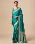 The saree comes with an unstitched blouse piece, allowing for customised styling. The luxurious silk fabric drapes beautifully and offers comfort while maintaining its regal appearance.