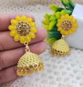 Stylish Floral Stone Jhumka Earring For Party Occasion (Stone Flower) Alloy Jhumki Earring