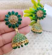 Stylish Floral Stone Jhumka Earring For Party Occasion (Stone Flower)