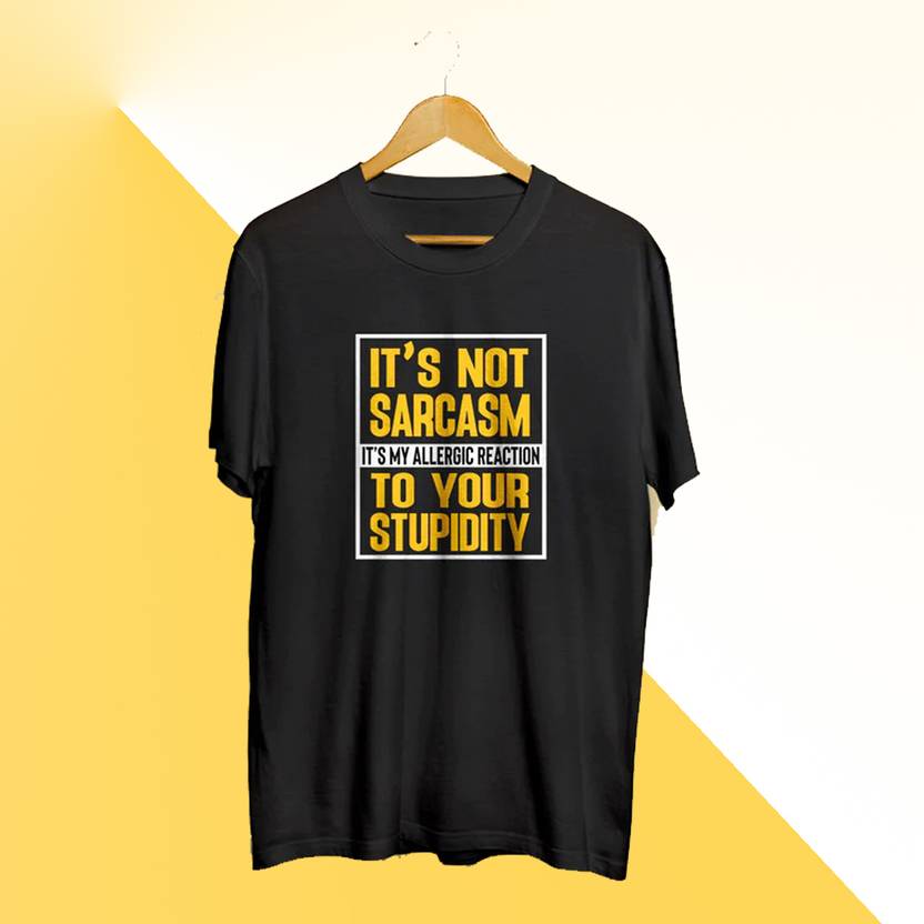 Men Typography Round Neck Cotton Blend Black T-Shirt