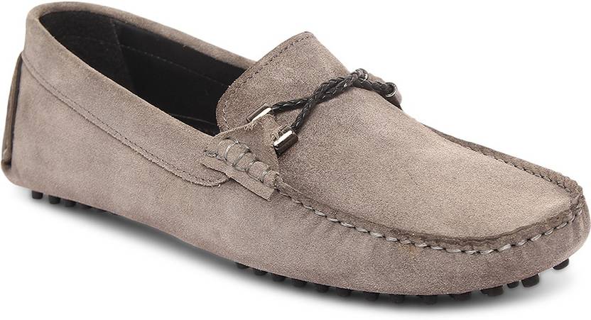 Keep your Latest-Casual style intact with this pair of Loafers shoes by MONKS & KNIGHTS. The Casual lifestyle footwear from MONKS & KNIGHTS is designed keeping in mind the style conscious youth. Featuring Round toe Brunette Grey Casual Slip-On detail Suede upper Cushioned footbed Textured and patterned outsole , these trendy formal shoes will stylishly complement your crisp look when paired with trousers and a checkered shirt.