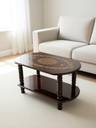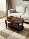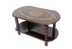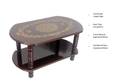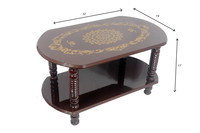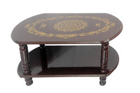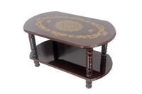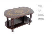 The wooden material coupled with the polished surface and intricate design on top shelf gives this table an exquisite look. The four carved columns joining the two table shelves brings it a rustic charm and enhances the aesthetics of your living space. Its oval design adds to the elegance of the table.
