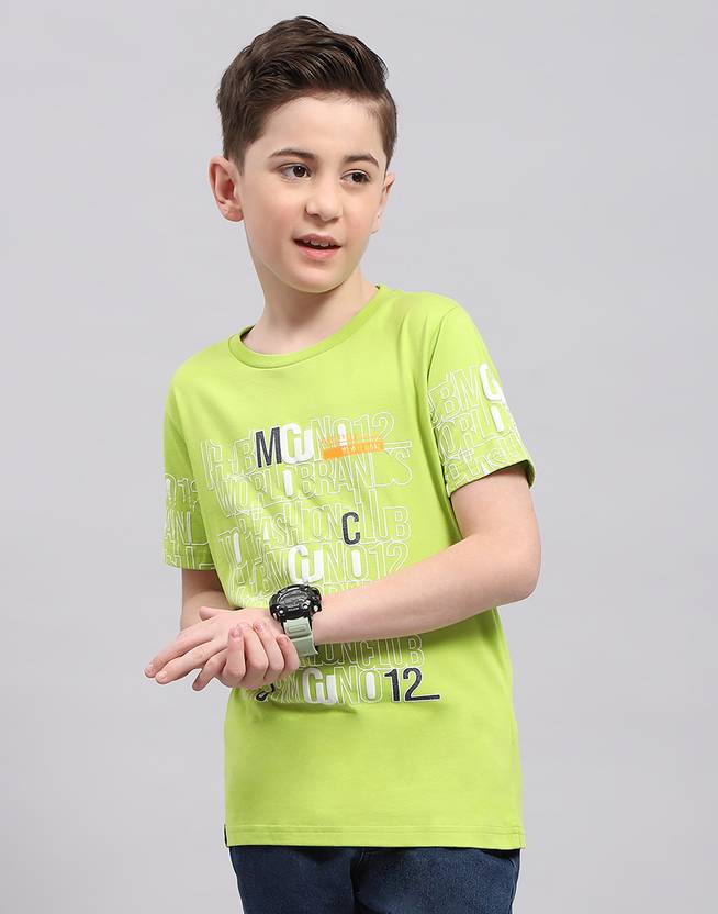 MONTE CARLO Boys Printed Cotton Blend Regular T Shirt (Green, Pack of 1)