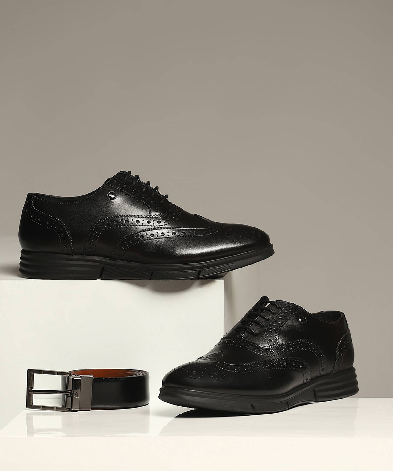 Feel classy with Monte Carlo Mens Black Formal Brogue shoes. They have an elegant lace up design, imported top lining and a non slip sole. They have a unique heel sole effect and come with sock padding.