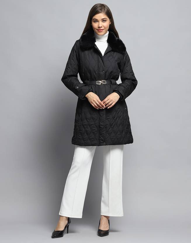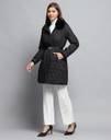 Monte Carlo Womens Self Design Black Collar Neck Full Sleeve Jacket. Made From Polyester Blend Fabric.