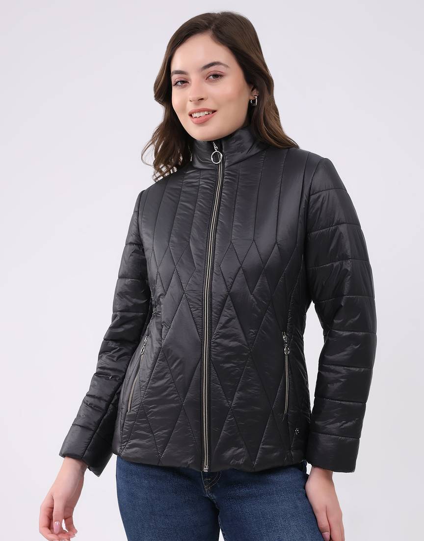 Monte Carlo Women Mock Neck Full Sleeve Jacket. Made From Nylon Blend