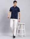 Monte Carlo Mens Navy Blue Solid Polo Neck Half Sleeve Regular Fit T-Shirt. Made from Cotton Blend fabric.