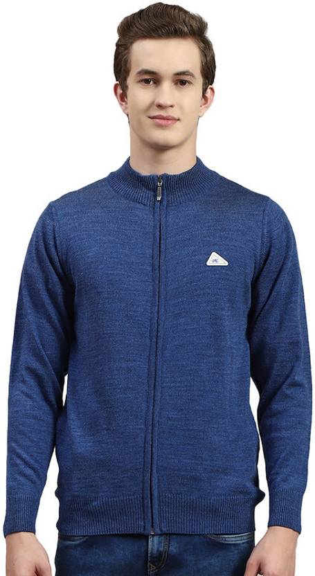 MONTE CARLO Solid Collared Neck Casual Men Blue Sweater