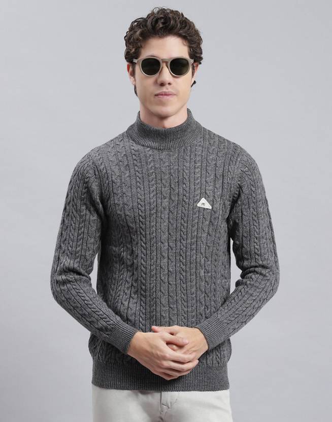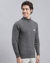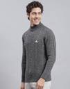 Monte Carlo grey mix self design t neck pullover. Made from blend wool fabric.