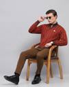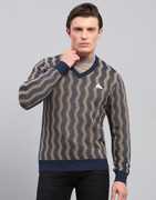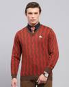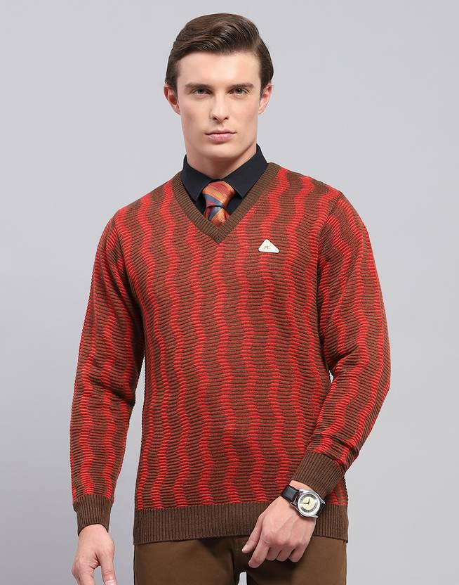 MONTE CARLO Self Design V Neck Casual Men Brown Sweater