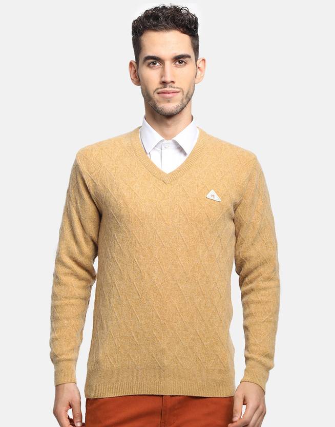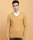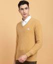 MONTE CARLO Self Design V Neck Casual Men Yellow Sweater