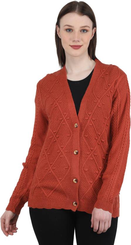 MONTE CARLO Self Design V Neck Casual Women Brown Sweater