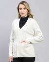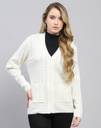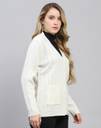 MONTE CARLO Self Design V Neck Casual Women White Sweater