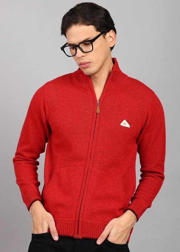 MONTE CARLO Solid High Neck Casual Men Red Sweater