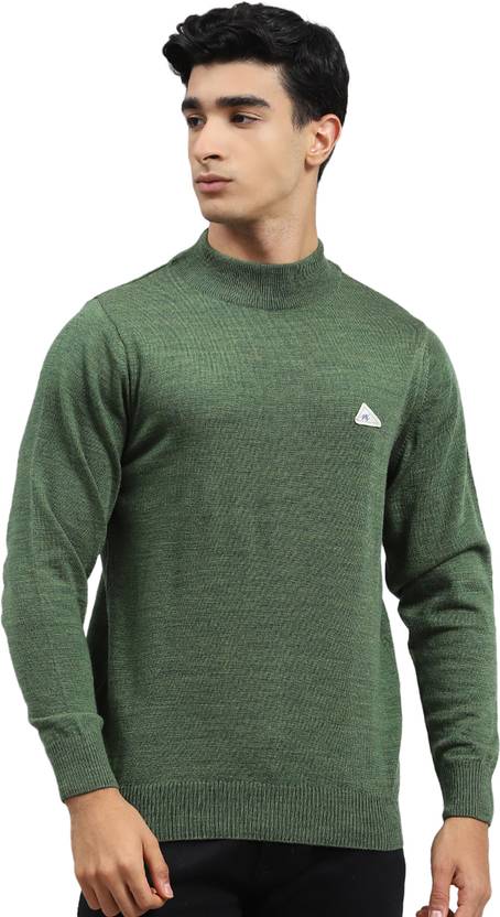 Monte Carlo Mens Solid Green Turtle Neck Full Sleeve Pullover. Made from Wool Blend fabric.