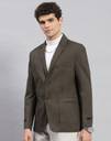 Monte Carlo Mens Olive Solid Notch Lapel Collar Full Sleeve Blazer. Made from Cotton fabric.