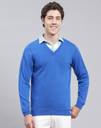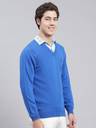 MONTE CARLO Solid V Neck Casual Men Blue Sweater