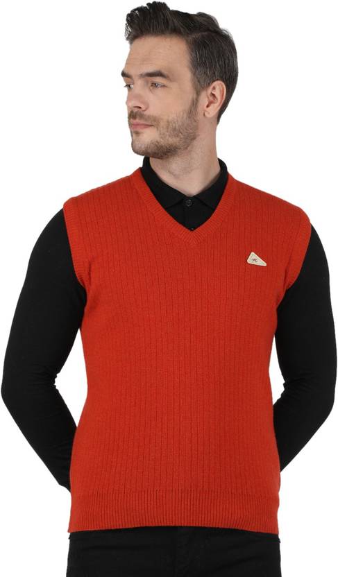 MONTE CARLO Striped V Neck Casual Men Orange Sweater
