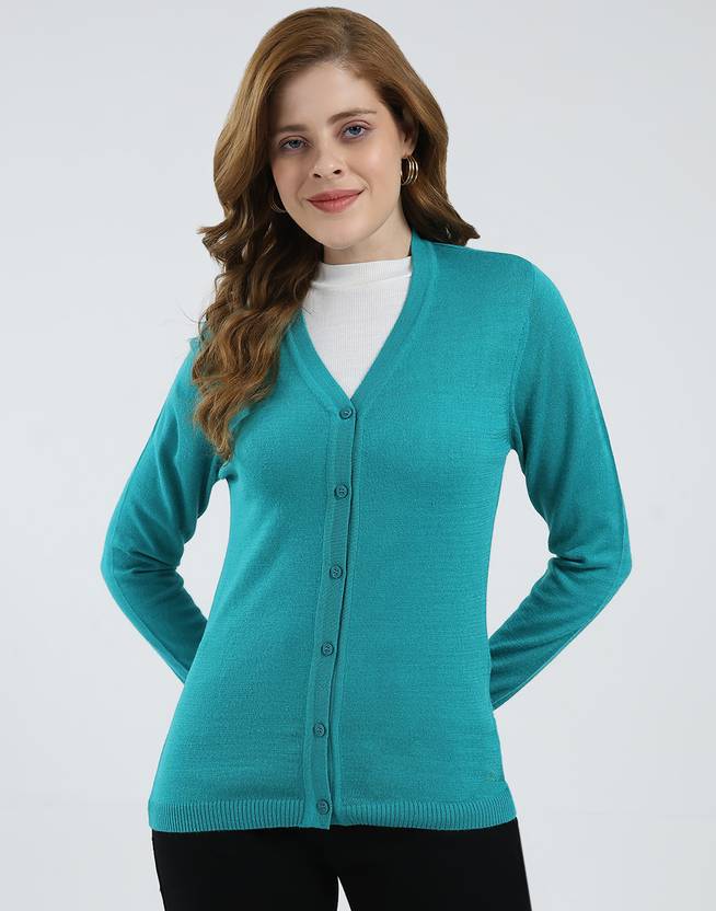 Monte Carlo Women's V Neck Full Sleeves Cardigan. Made From Blend Wool