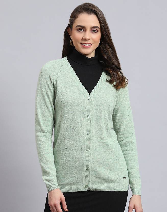 MONTE CARLO Solid V Neck Casual Women Light Green Sweater