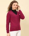 MONTE CARLO Solid V Neck Casual Women Maroon Sweater
