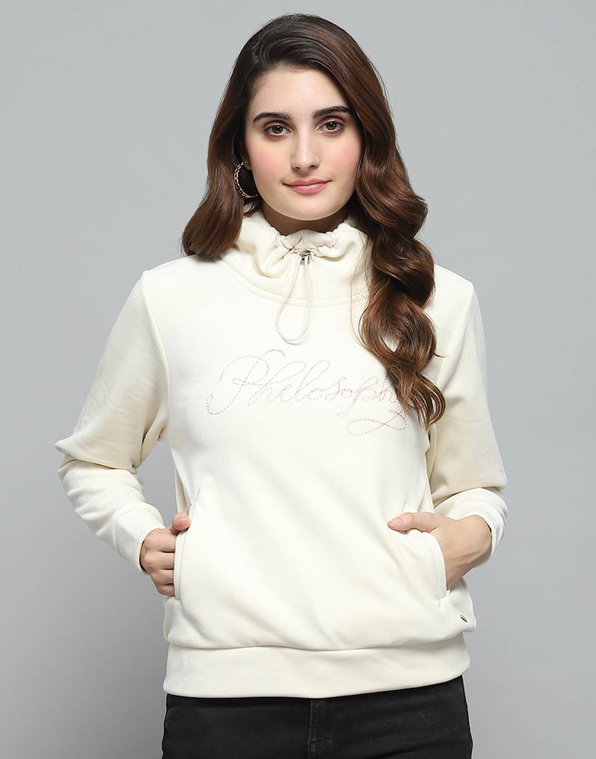 MONTE CARLO Solid V Neck Casual Women White Sweater