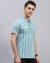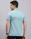Men Striped Polo Neck Cotton Blend Blue T-Shirt