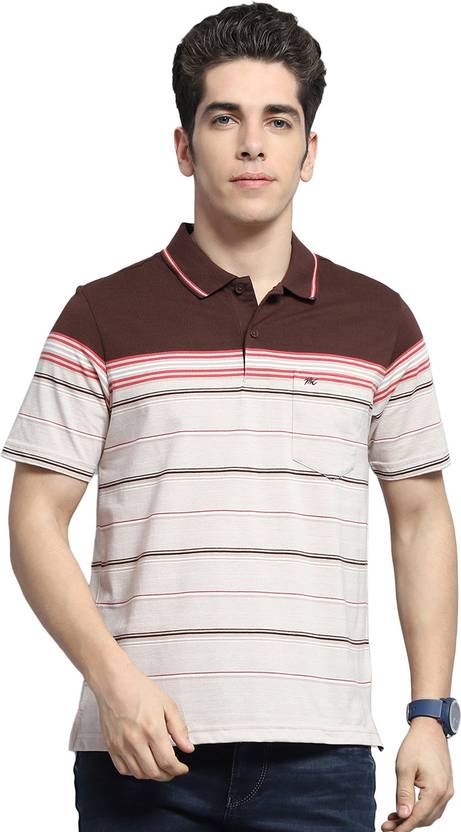 MONTE CARLO Striped Men Polo Neck Multicolor T-Shirt