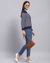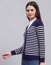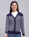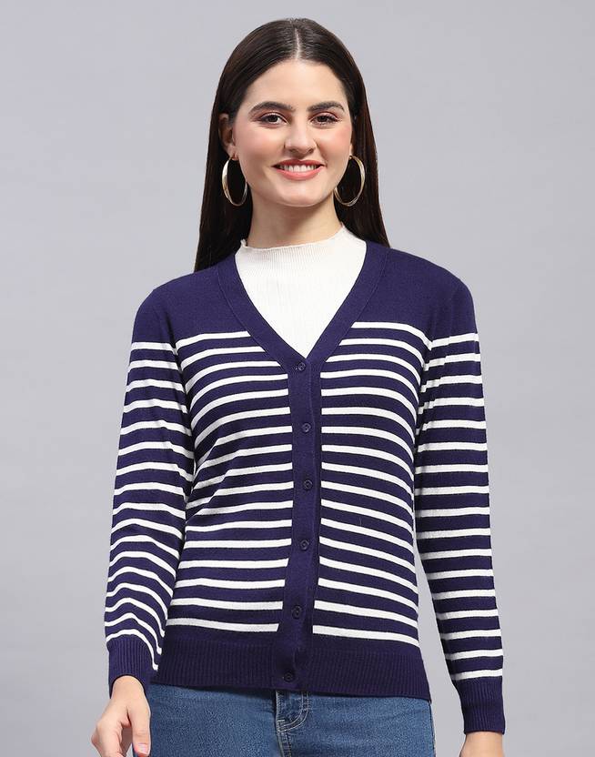 MONTE CARLO Striped V Neck Casual Women Blue, White Sweater