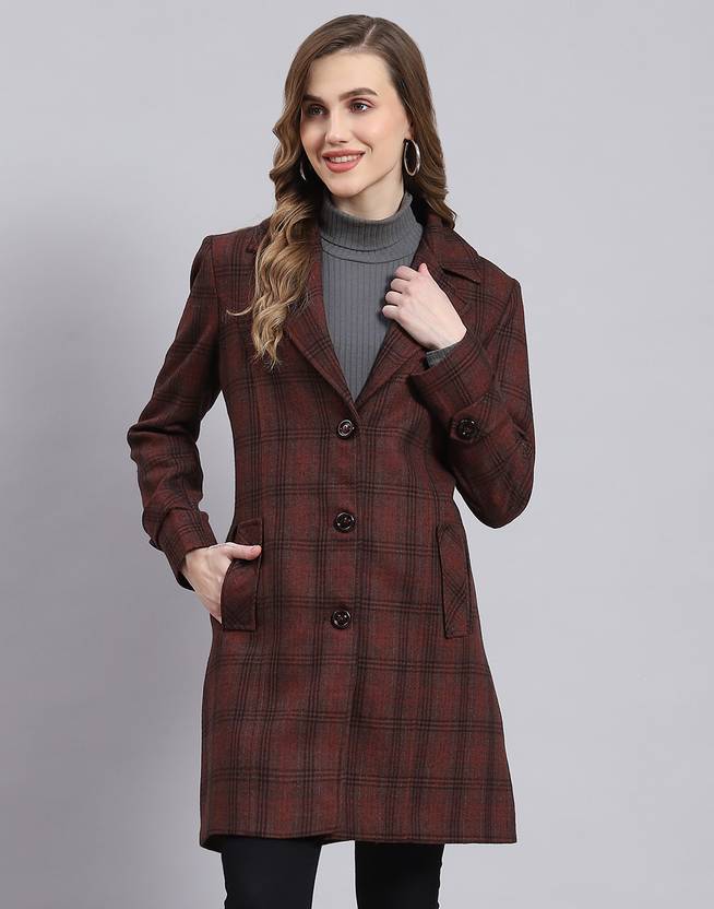 Monte Carlo wine check lapel collar coat. Made from wool blend.