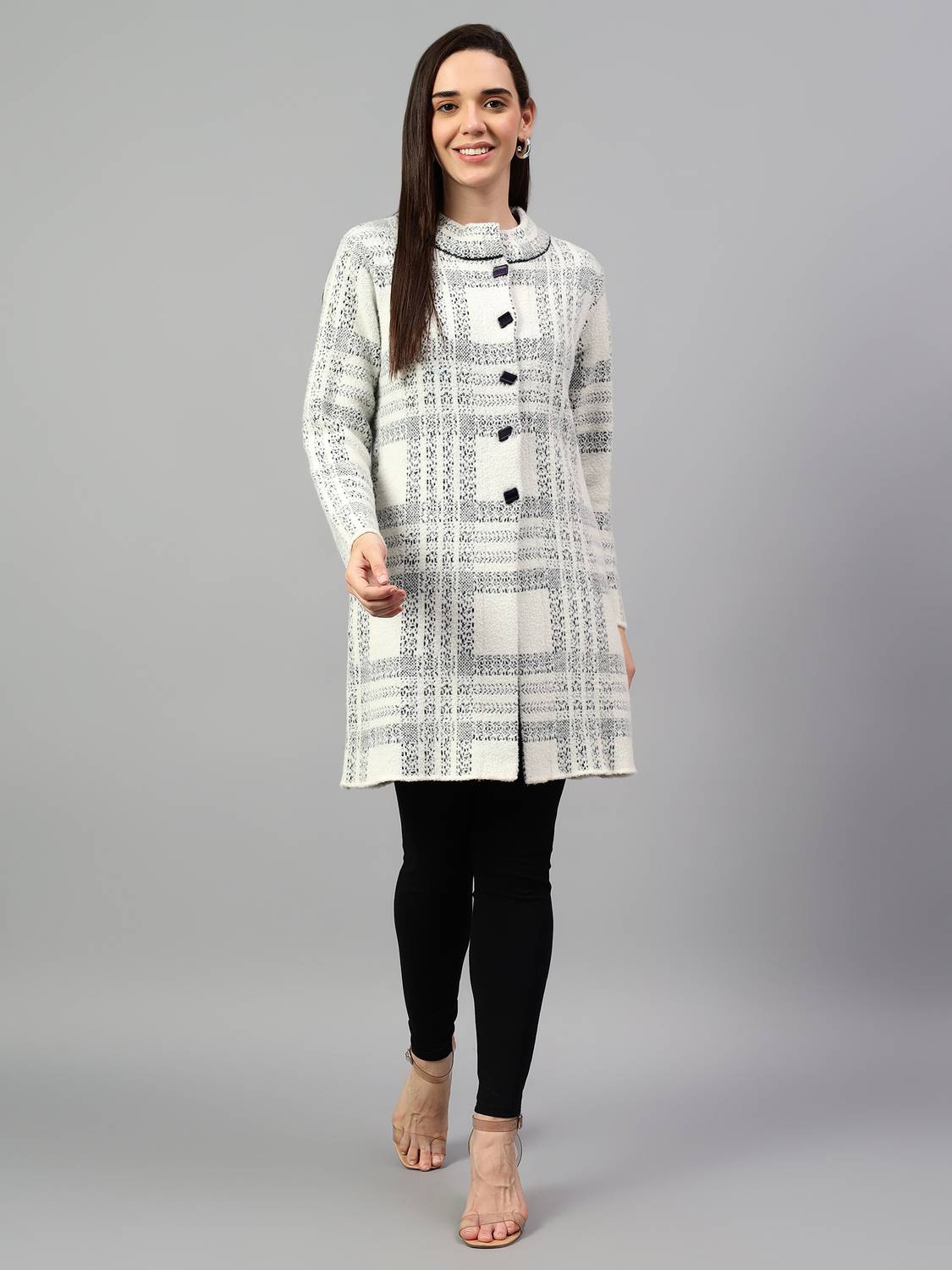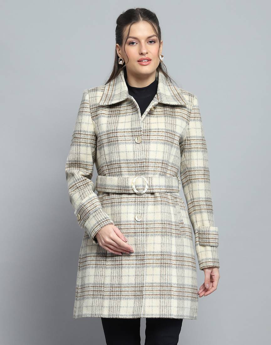 Monte Carlo Womens Check Beige Collar Neck Full Sleeve Coat. Made From Wool Blend Fabric.