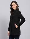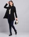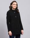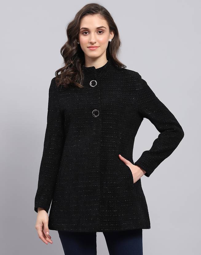Monte Carlo Womens Self Design Black Round Neck Full Sleeve Coat. Made from Wool Blend fabric.
