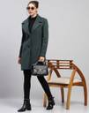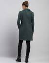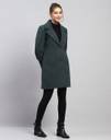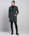 Monte Carlo Womens Self Design Green Notch Lapel Full Sleeve Coat. Made From Wool Blend Fabric.